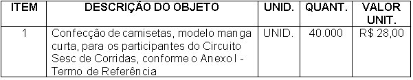 Registro de Preços para confecção de camisetas dos participantes do Circuito Sesc de Corridas