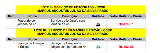 Registro de Preços de Serviço Fotográfico e Filmagem Profissional